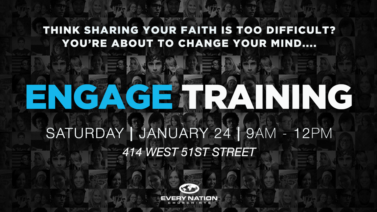 Led by Pastor Shino Prater, this training will be an in-depth follow up to our engage seminar at the UNITE conference last Fall. We want to train you to be an evangelist. Whether you’re just getting started or already rolling, come join other Every Nation NYC members who are eager to see people all around them come to Jesus.