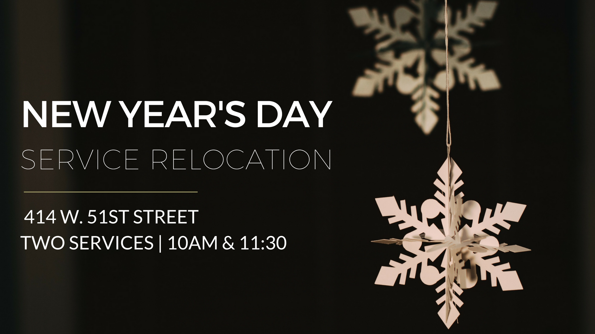 On New Year’s Day, our West Side service will be having two services at our church office. The first service will begin at 10AM and the second will be at 11:30AM. Our office is located at 414 W. 51st Street between Ninth and Tenth Avenues.